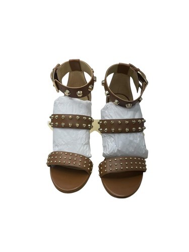 Michael Kors Women Amal Sandal Studs Stilleto Leather Luggage 40F2AMHS1L 6.5