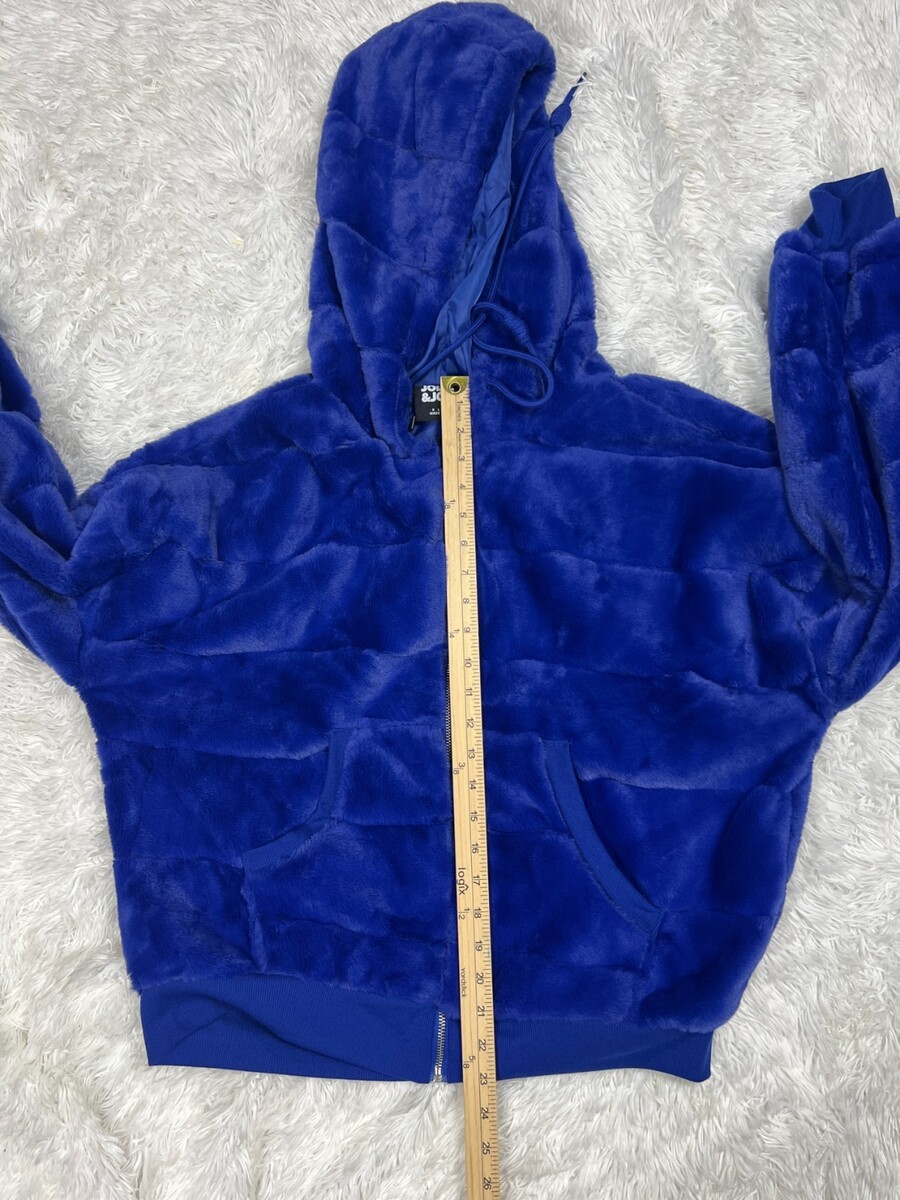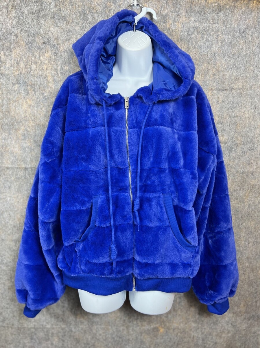 Jolie & Joy Blue Faux Fur Puffer Jacket Hoodie Zip Up Womens XL Plush Coat