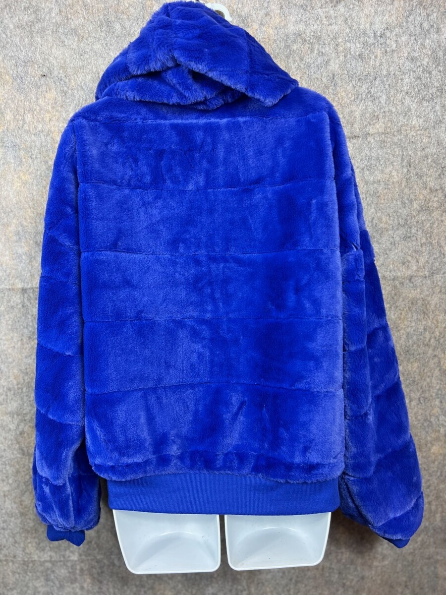 Jolie Joy Blue Faux Fur Puffer Jacket Hoodie Zip Up Womens XL Plush Coat