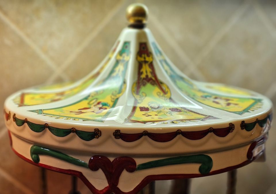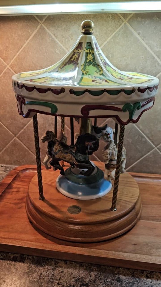 VTG Willitts Music Box Large 4 Horse Carousel Ceramic Brass Carousel Waltz Video