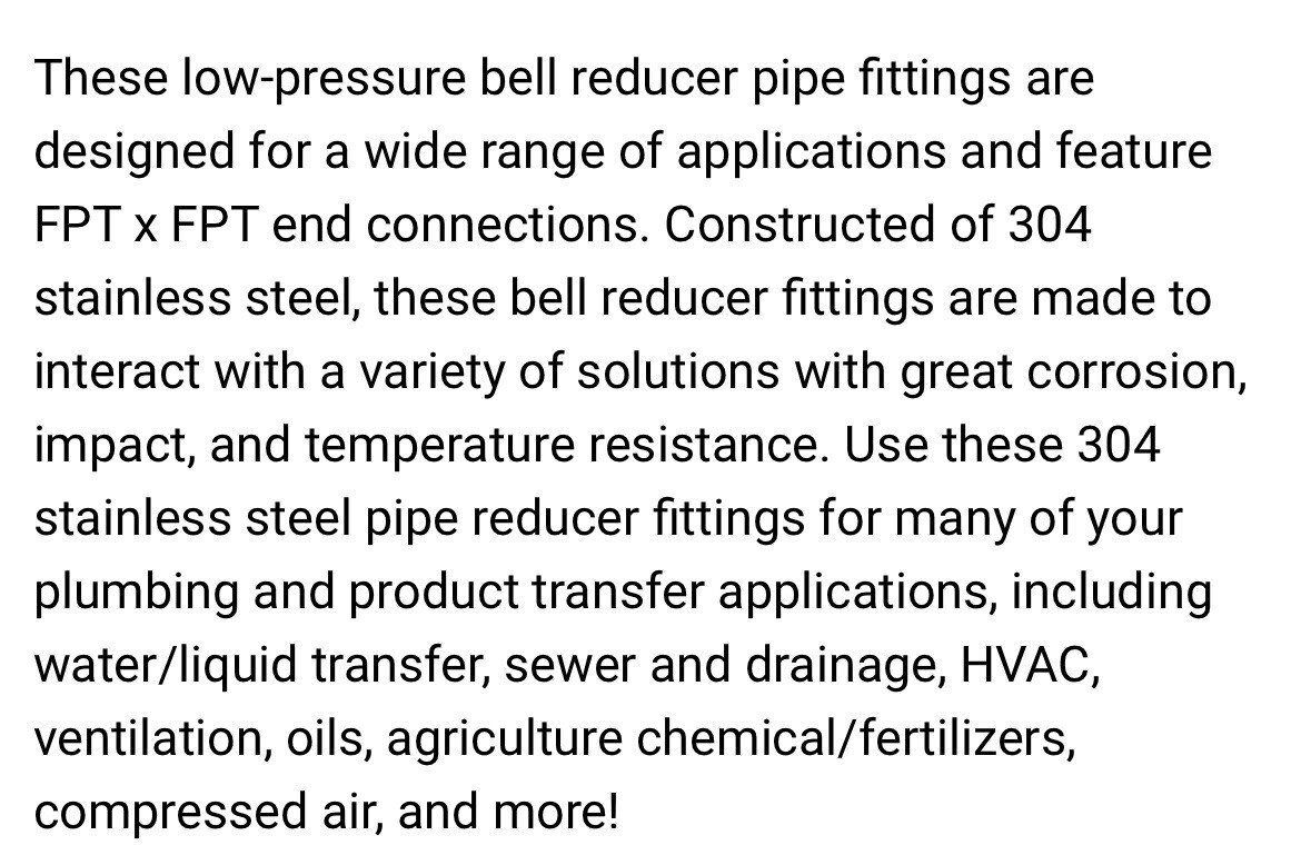304 Stainless Steel 150PSI 2” X 1” Female and 50 similar items