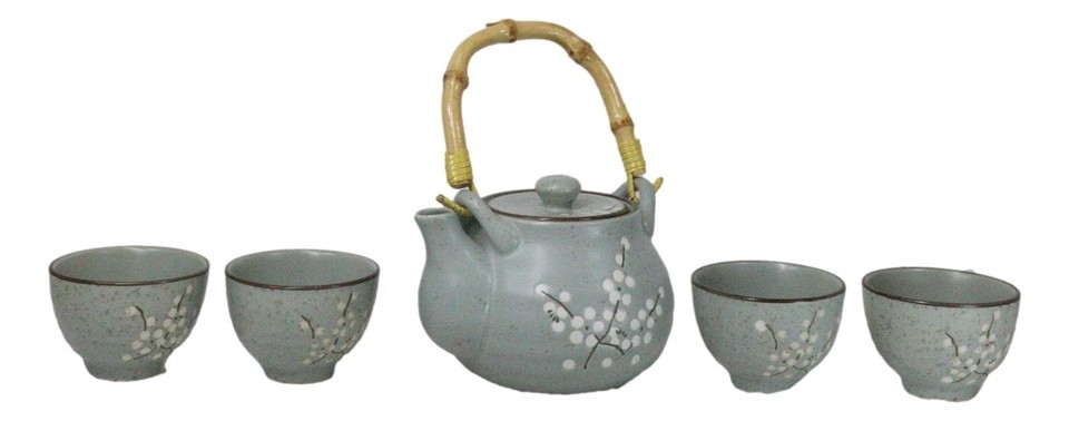 Japanese Sakura Pastel Ume Plum Cherry Blossom Traditional Teapot With Cups Set