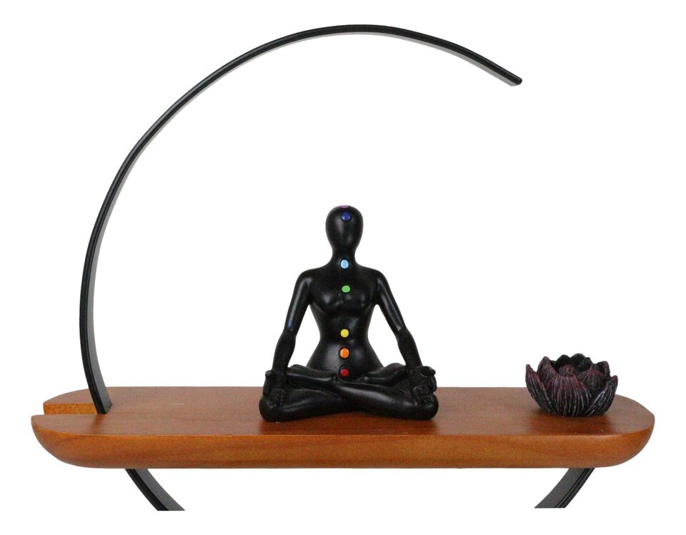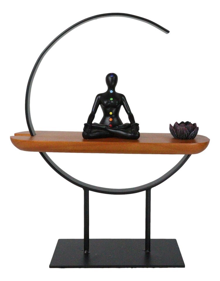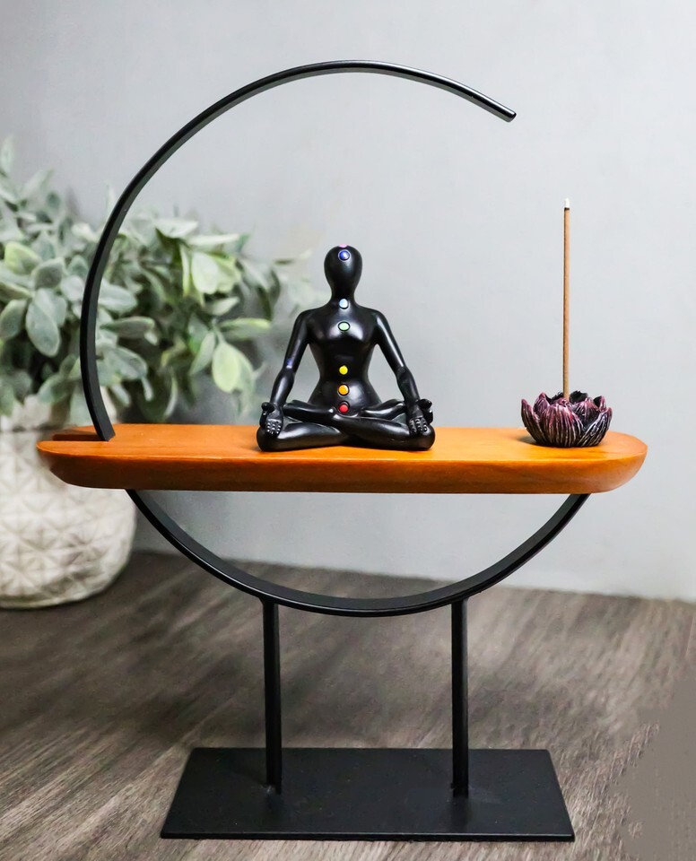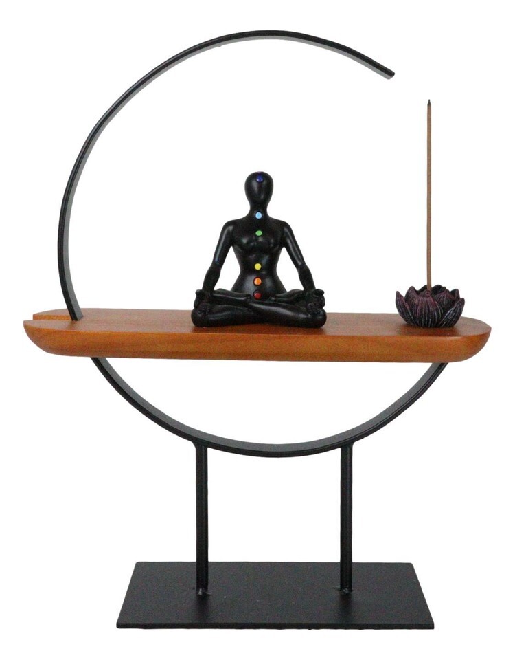 Zen Crescent Rainbow 7 Chakra Zones Black Yoga Avatar With Lotus Incense Burner
