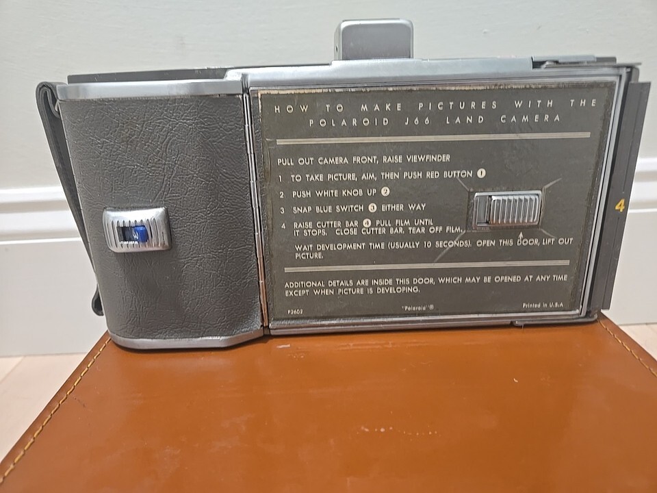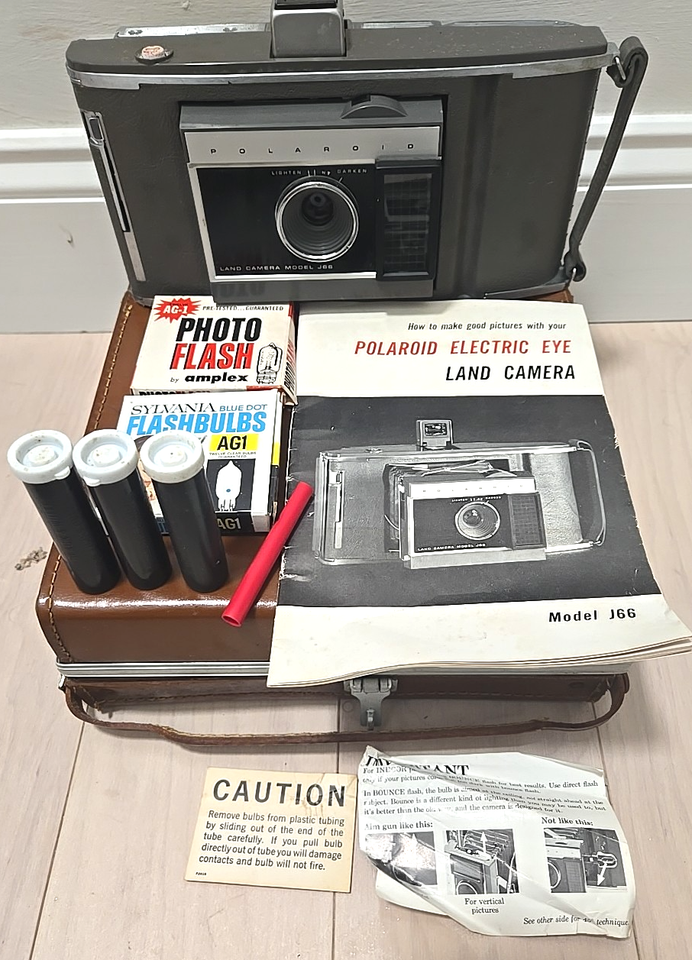 1960's Polaroid J66 Land Camera w/Original Leather Case Instructions BONUS