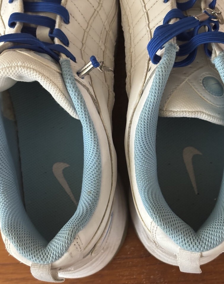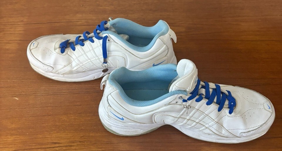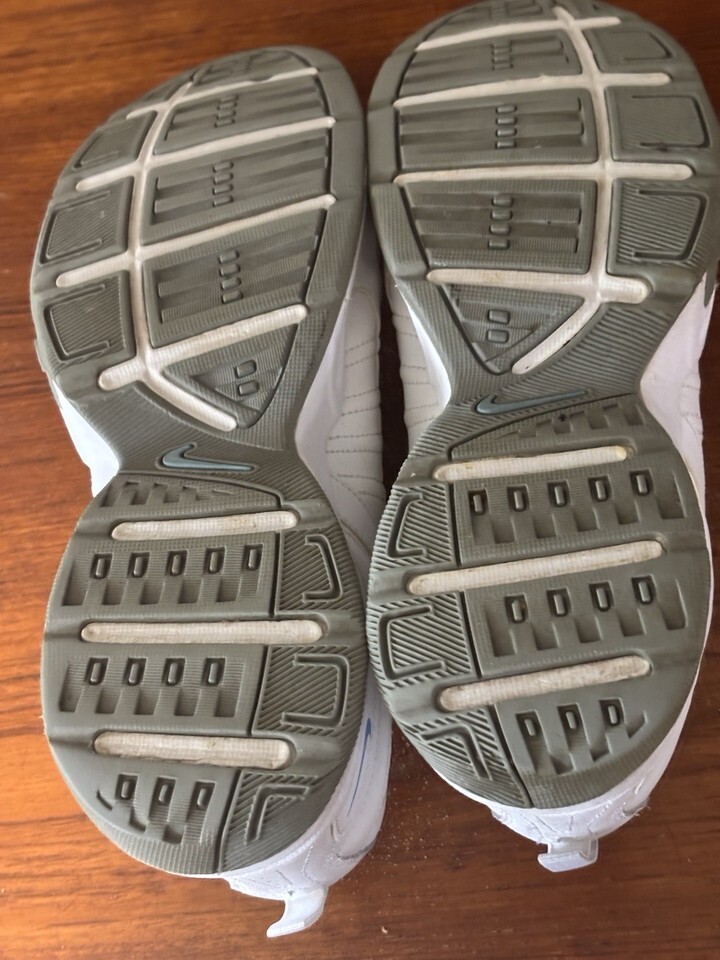 Up for bid is a pair of Nike Womens T Lite VIII 386508-141 White Running Shoes Sneakers Size 10. These shoes are pre-owned and in "like new condition." There are minimal signs of use on the outside and inside of the shoes. There is a small "indentation"(?) on the inside of the top part of the sole on the right shoe, as shown in the photos. Please reach out if you have any questions and review all photos before making a bid.