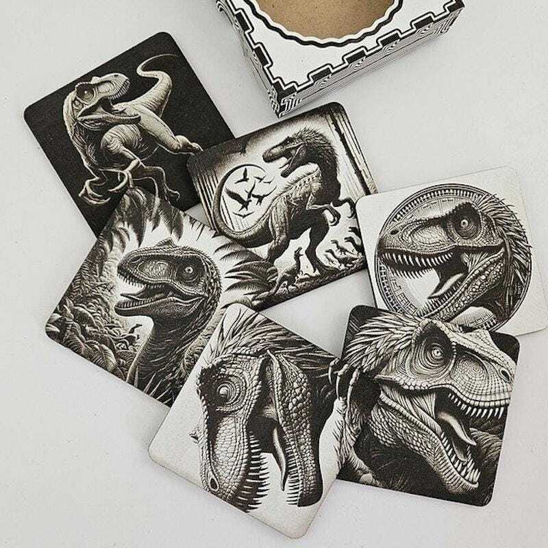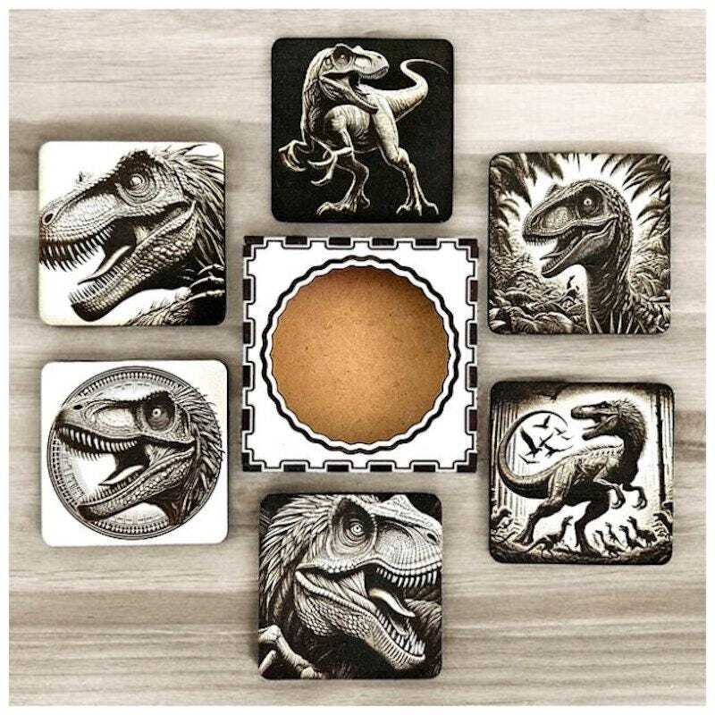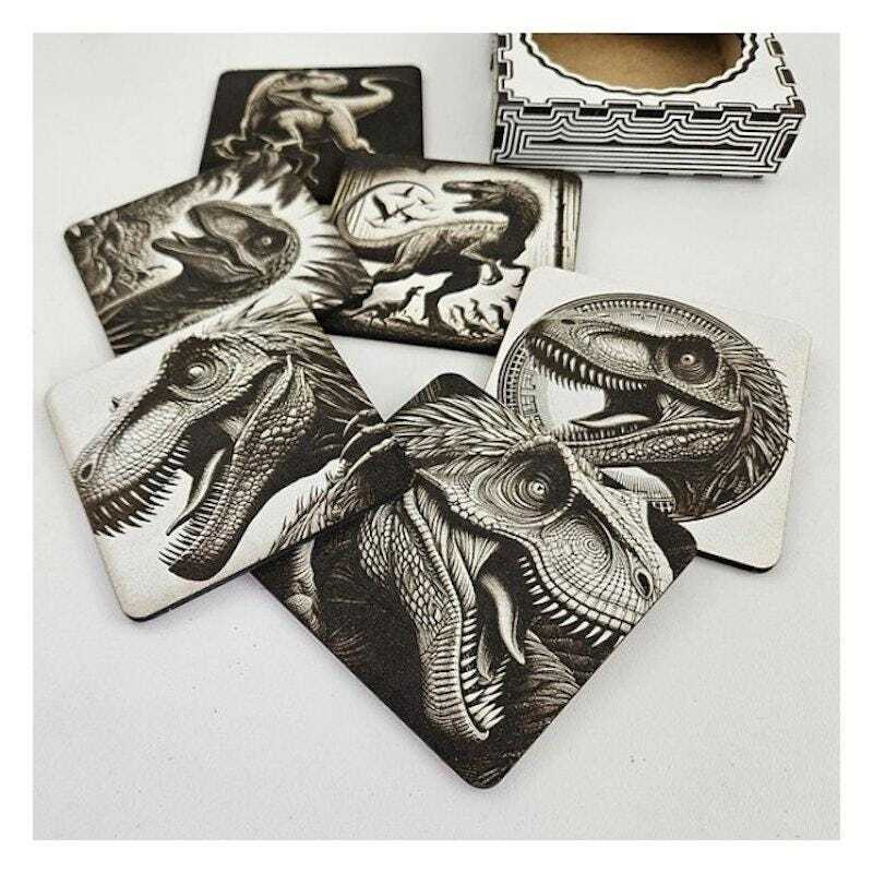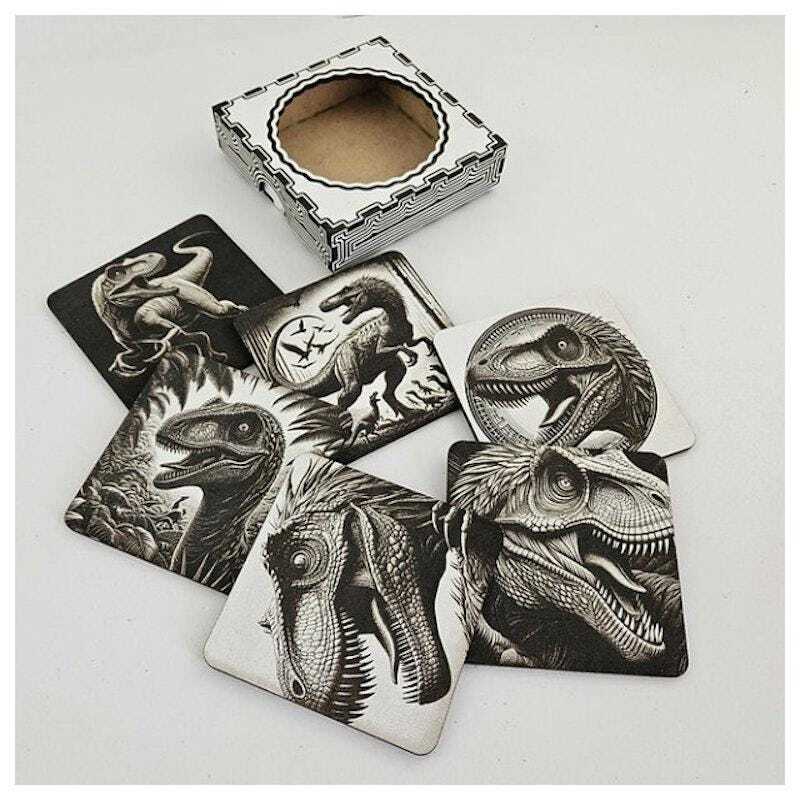 This fierce and fun Raptor-themed coaster set includes 6 wooden coasters, each engraved with detailed dinosaur designs inspired by the legendary velociraptor. Whether you're a Jurassic Park fan or a dino enthusiast, this set is made to stand out.