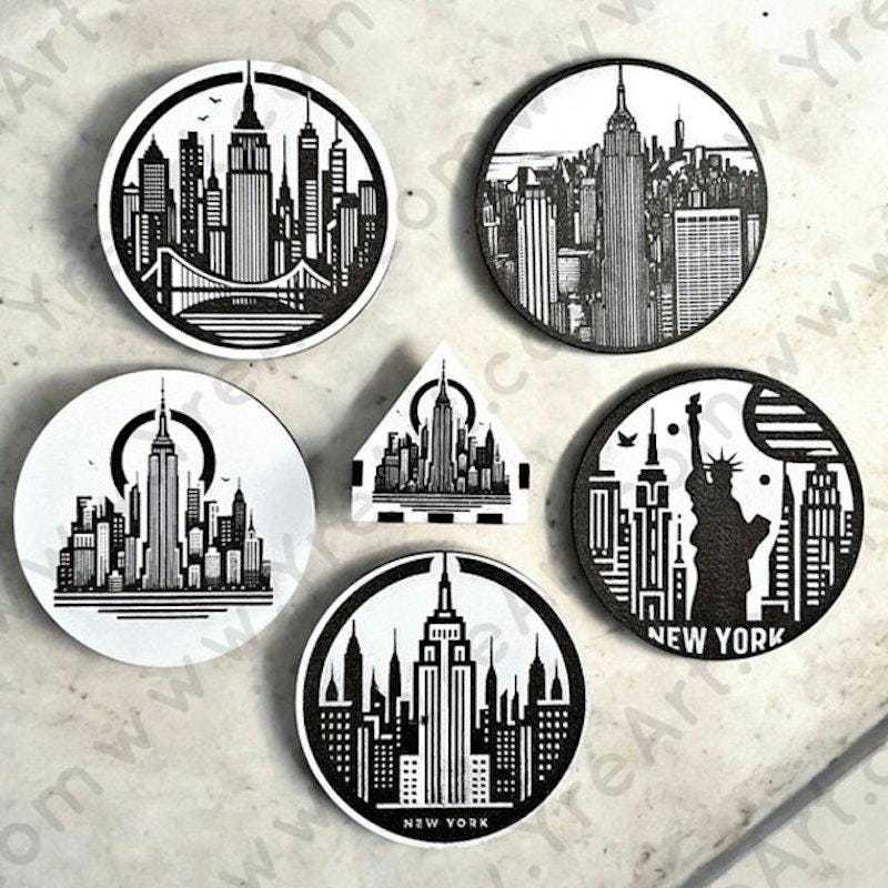 5 engraved wooden coasters with NYC designs