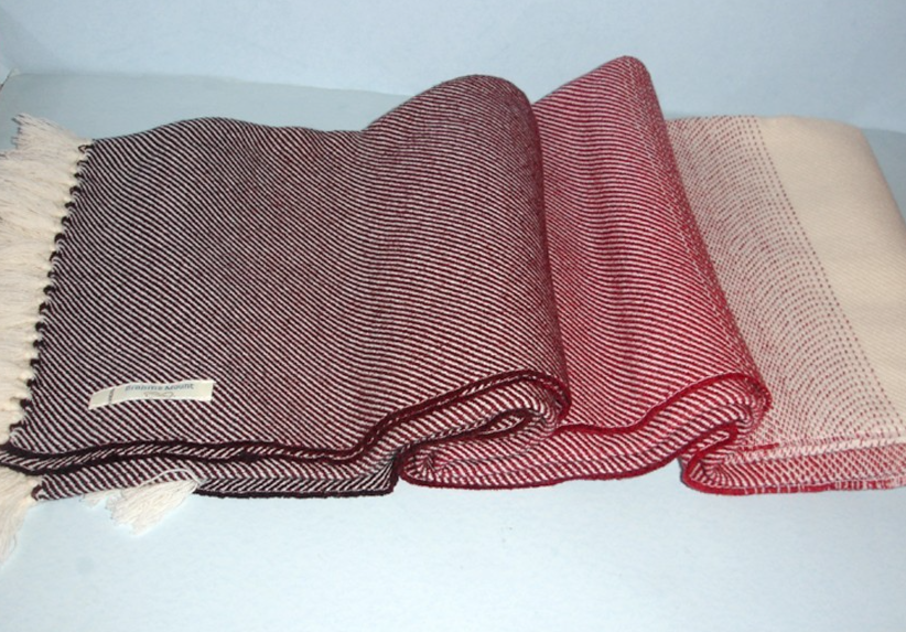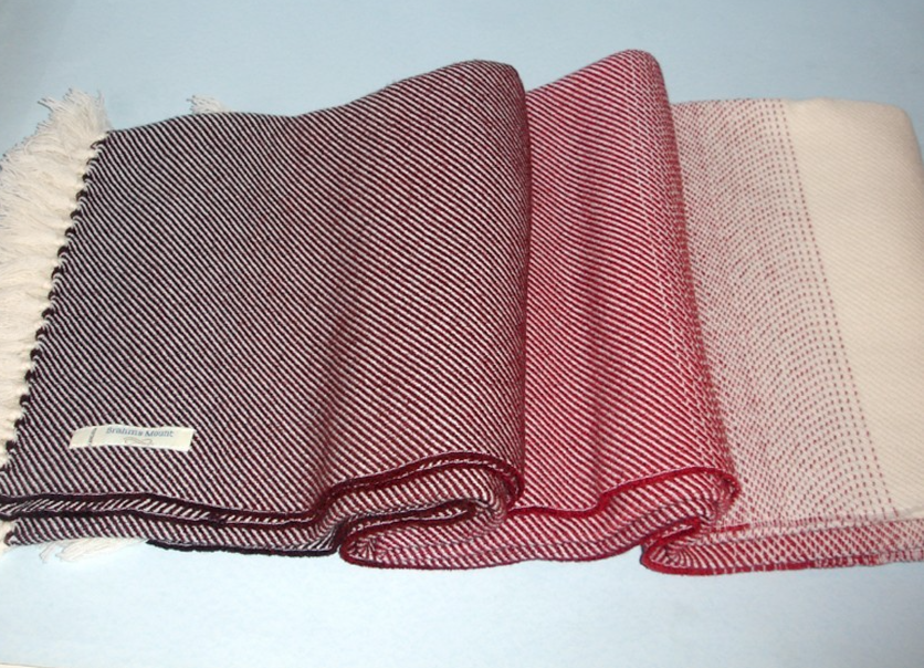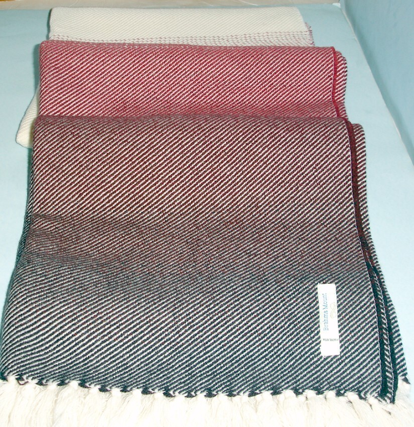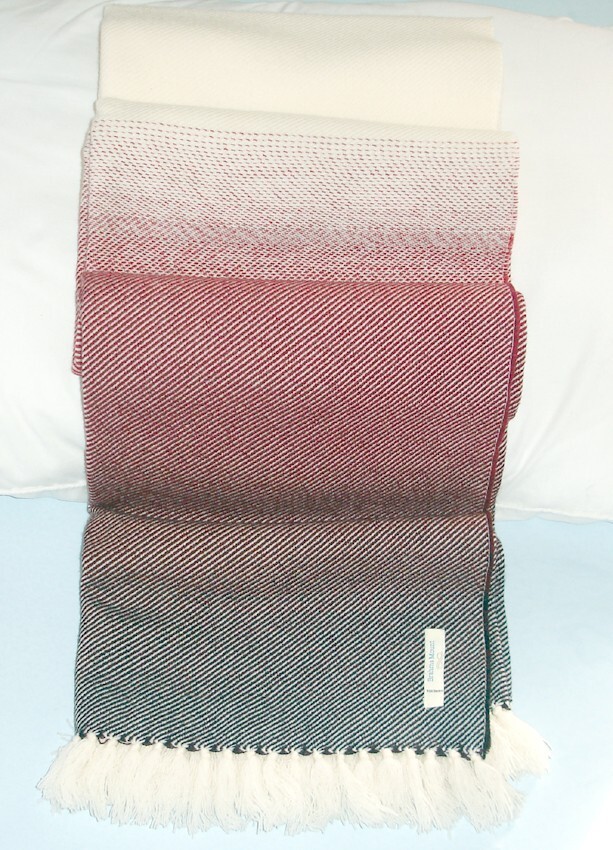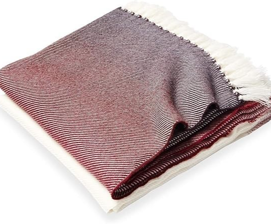 Brahms Mount 100% Wool Throw Blanket Plum Graduated Ombre Fringed 50x80" USA New