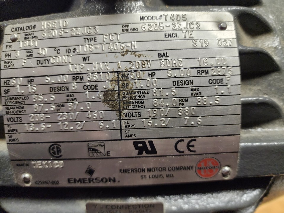 Emerson/US Motors 5 HP 3 PH 3510 RPM 184T and 49 similar items