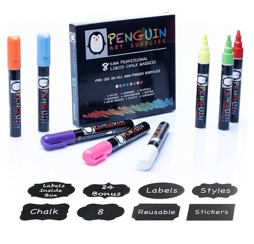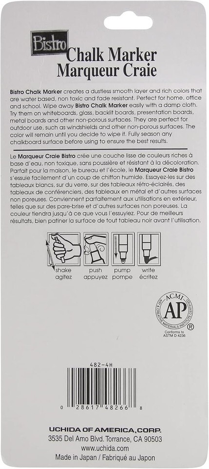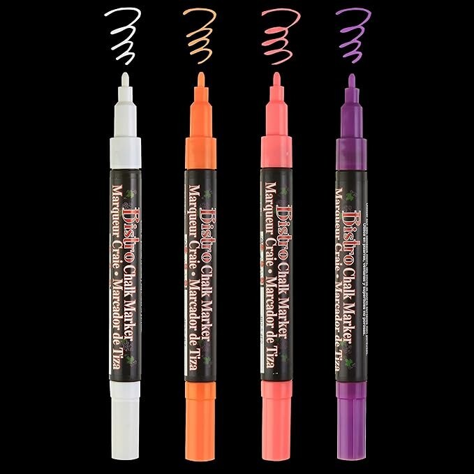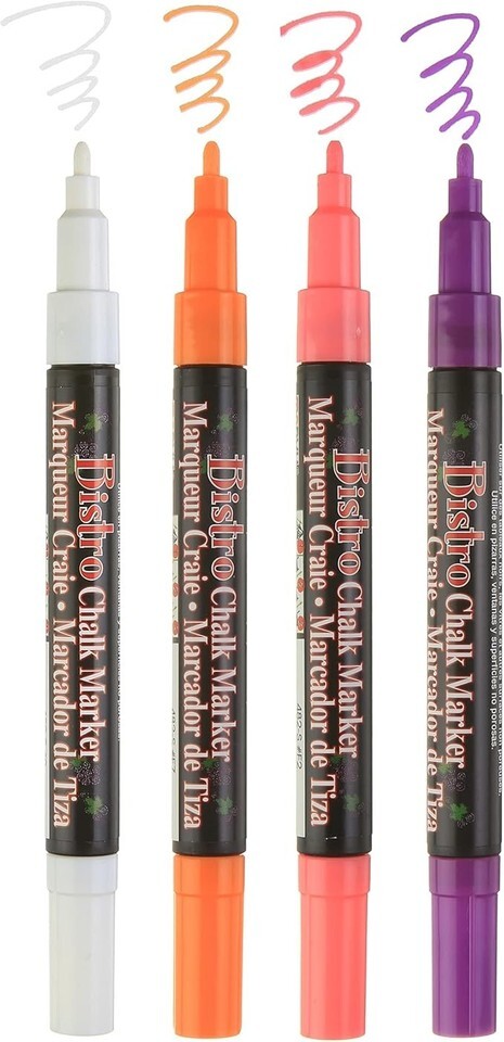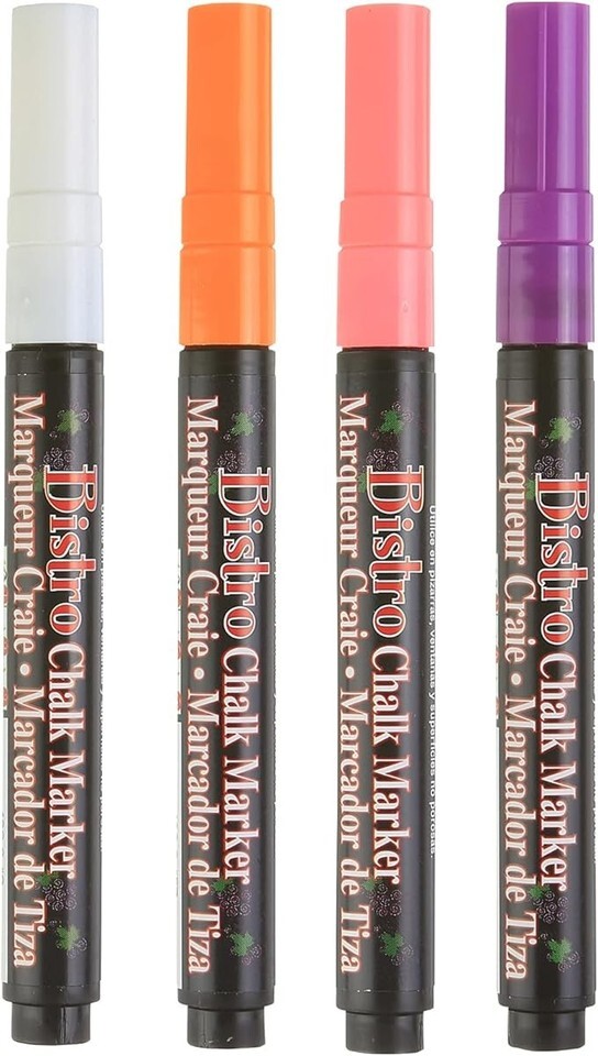 Uchida 482-4H, 4 Piece Bistro Fine Line Chalk Marker Set Fluorescent Colors
