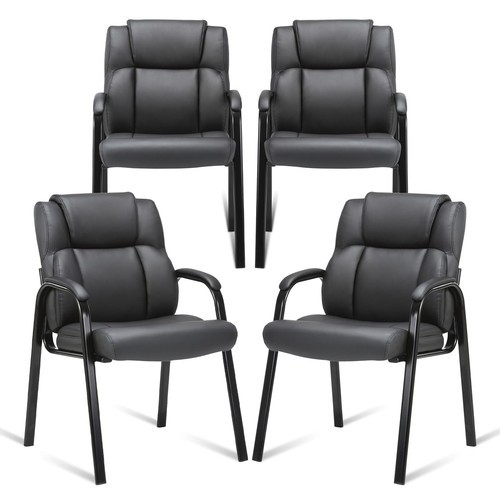 These black leather accent chairs are made with a sturdy chrome-finished steel frame and durable bonded leather forms.