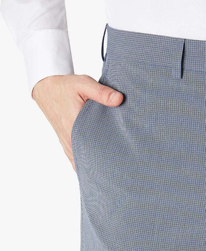 Lauren Ralph Lauren Mens Classic-Fit Gray/Blue Mini-Check Dress Pants, 38WX34