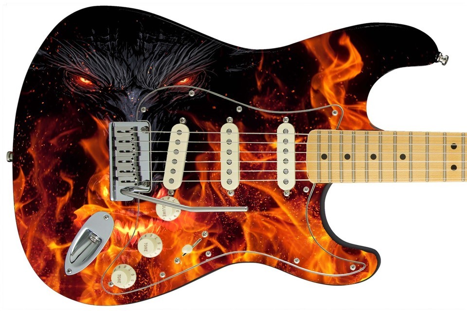 With precision we are introducing our 9" X 12" Vinyl sheet of our Guitar Skins Axe Wrap Reskins Designs for Pickguards Headstock Tremolo Skin Wrap Reskin for Guitars.