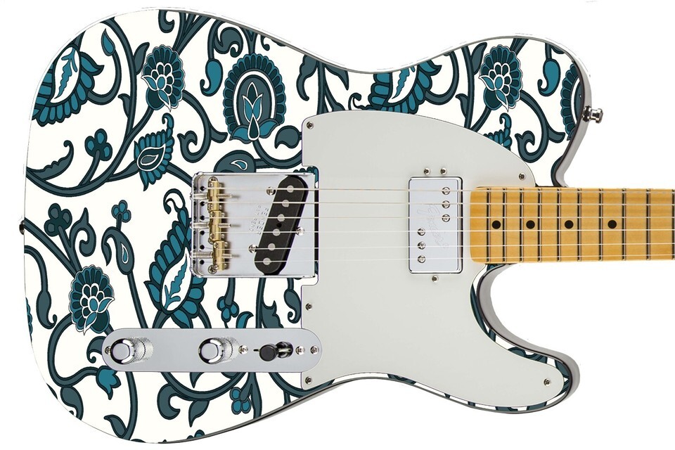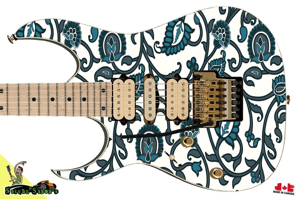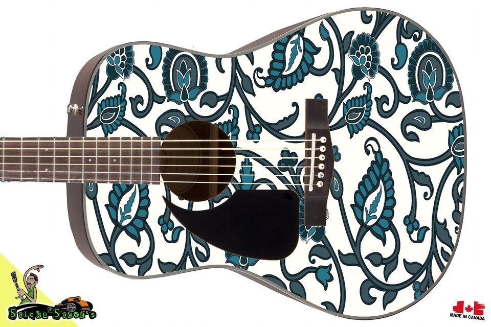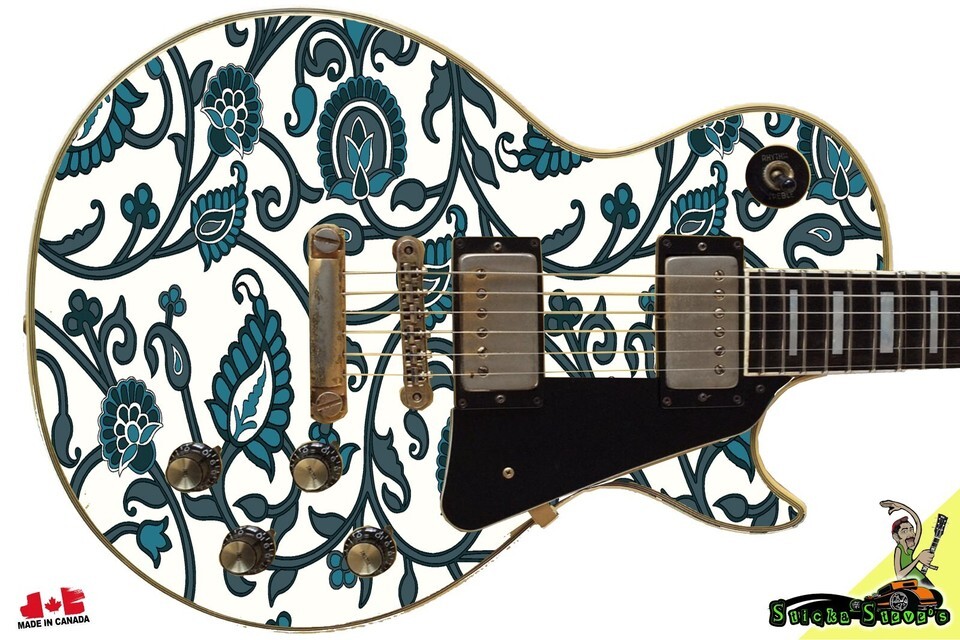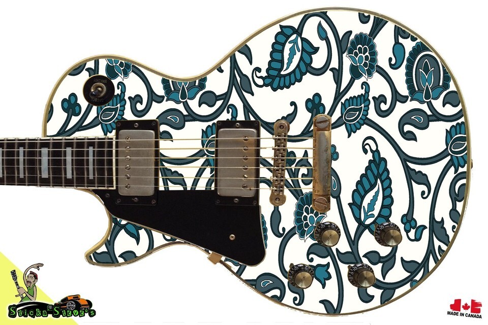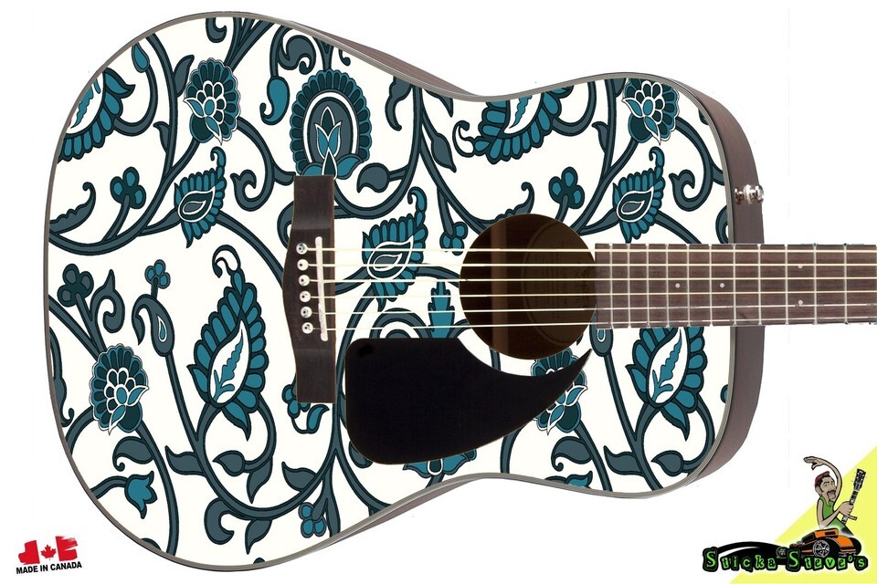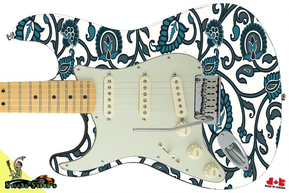 Sticka Steve's Guitar Skin Wrap Reface Re-Skin Colonial Blue White Paisley 086