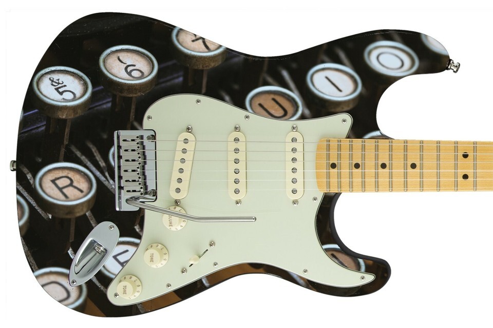 Guitar Skin Axe Wrap Re-Skin Vintage Retro Cool Keys Typewriter Register A