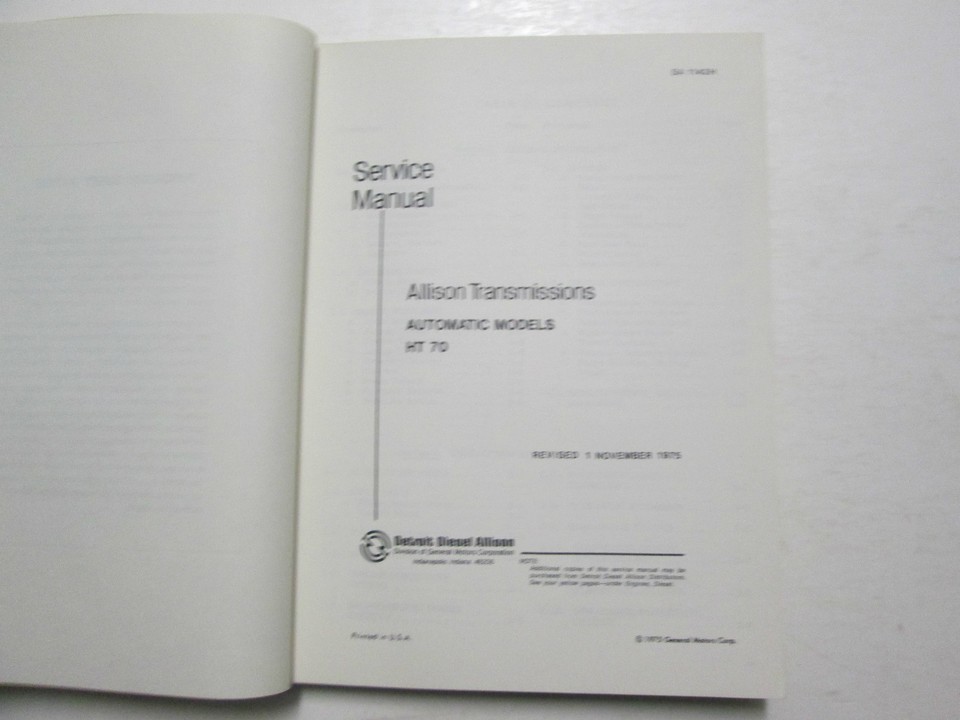 Detroit Diesel Allison Transmissions HT 70 Series Service Manual SA 1142H USED x
