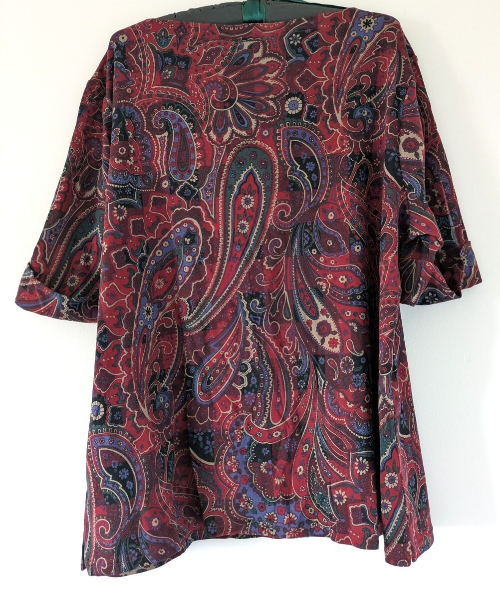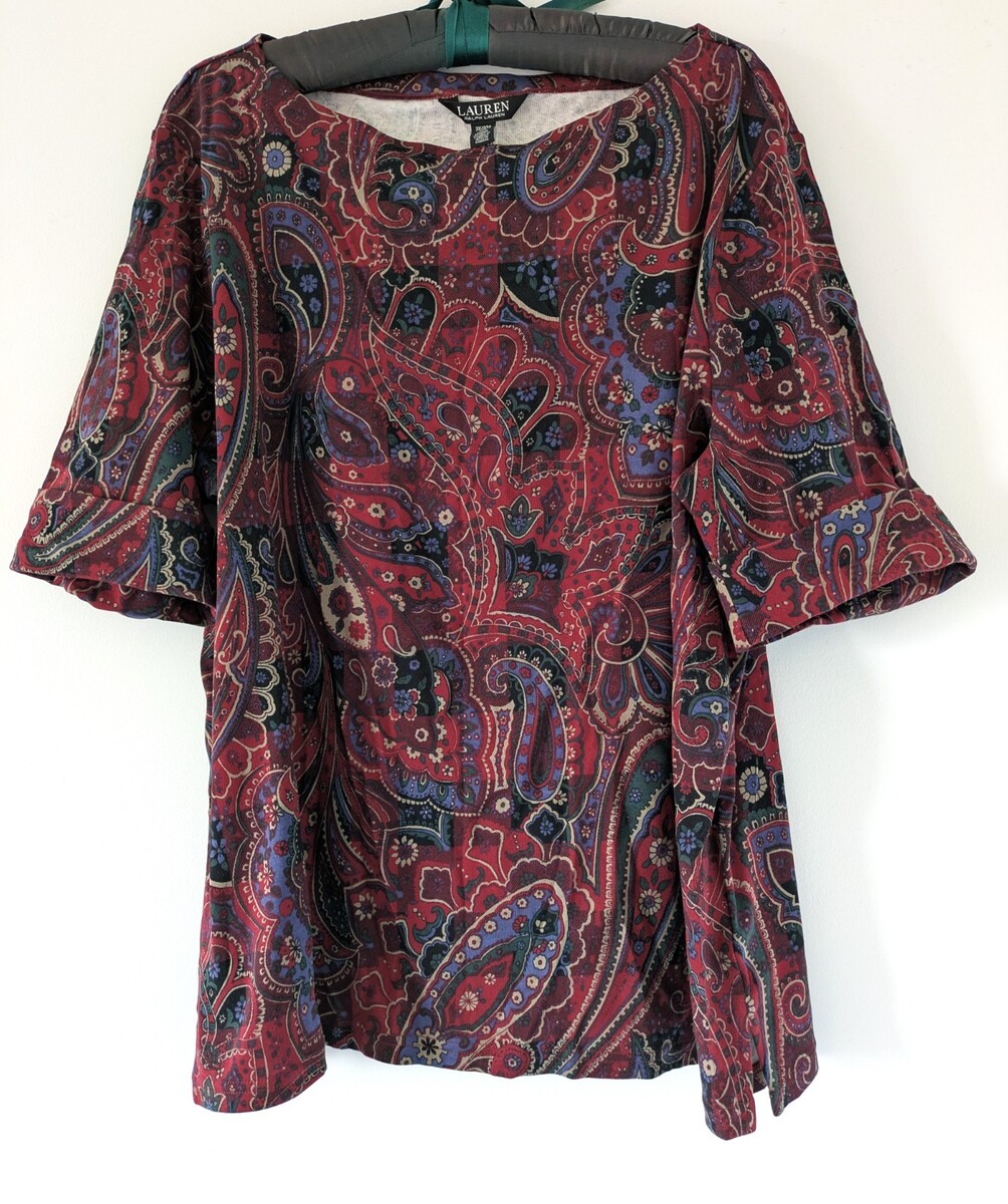 Lauren Ralph Lauren Plus-Size Checked Paisley Cotton Boatneck Tee - Size 3XL