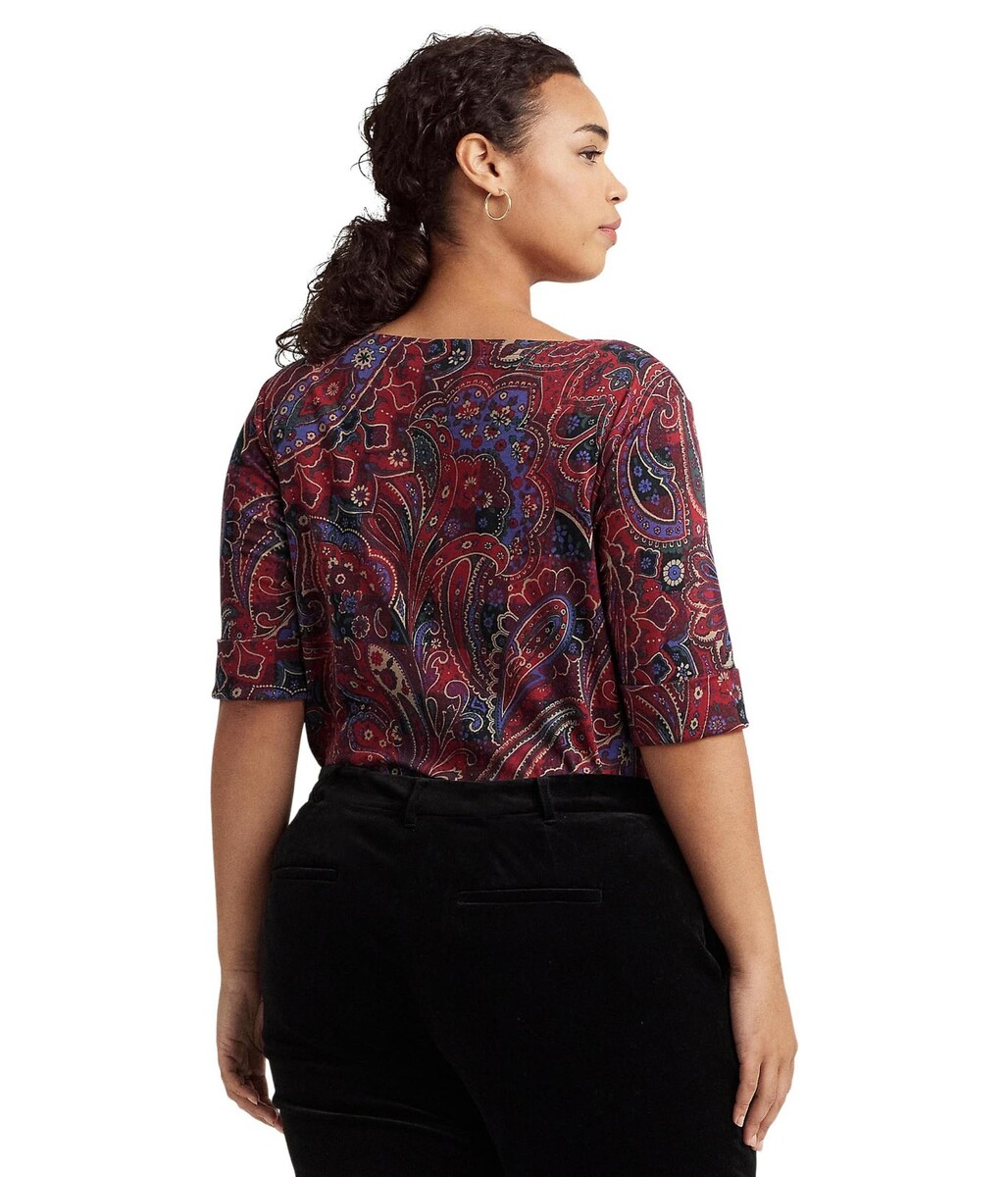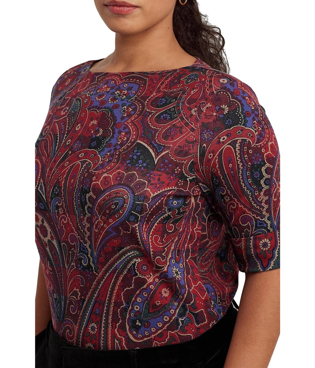 Lauren Ralph Lauren Plus-Size Checked Paisley Cotton Blend Boatneck Tee