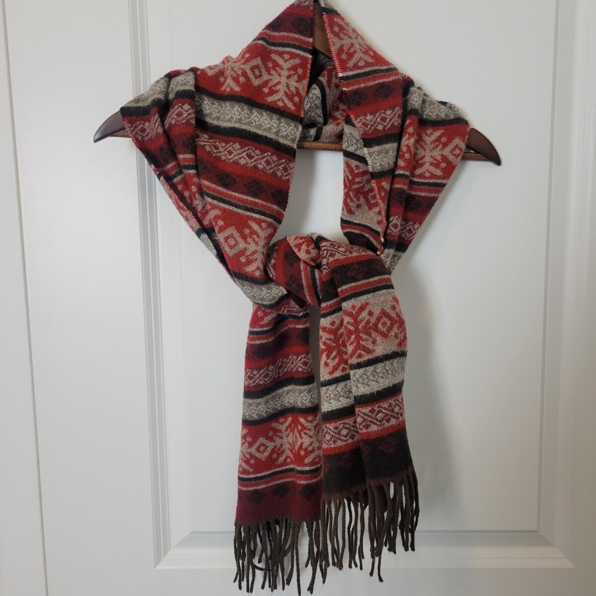 V. Fraas Womens Scarf Cashmink Black RedGrey Fair Isle Germany Size 68??x13??