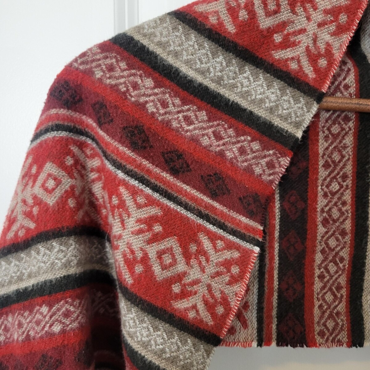 V. Fraas Womens Scarf Cashmink Black RedGrey Fair Isle Germany Size 68’’x13’’