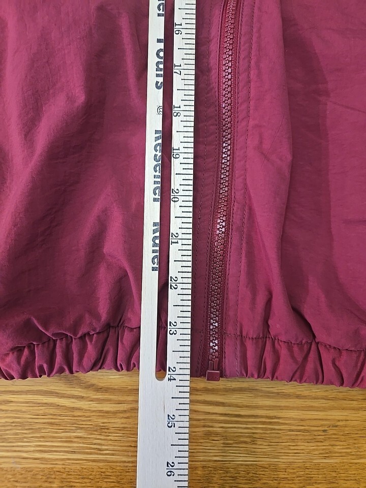 The Jansport Vtg 90s Y2K Sideline Rain Jacket is a vintage piece perfect for any fan of CMU football or sports enthusiasts. Made with nylon outer shell material and lined with polyester, this short-length jacket features a solid red color with a full zip closure and hood. With a regular fit and elastic waist, this jacket is ideal for casual occasions during the winter, fall, or spring seasons. The y2k, college, and 80s/90s sports themes make it a unique and stylish addition to any wardrobe, representing the nostalgia of that era.