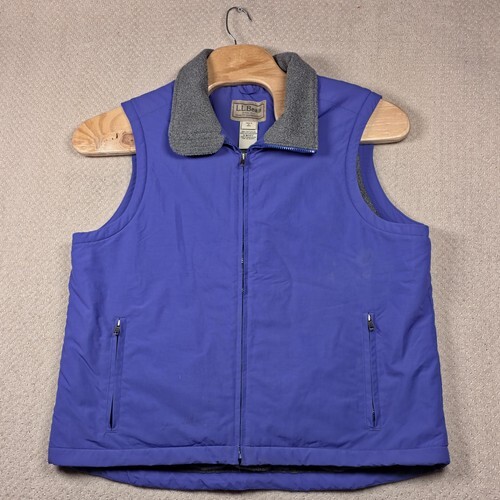 The LL Bean Y2K Warm Up Fleece Lined Full Zip Vest is a versatile and practical outerwear option for men. Made with nylon outer shell material and lined with polyester, this vest provides excellent insulation and wind protection, making it ideal for winter, fall, and spring seasons. The full zip design and spread collar style add a classic touch to the solid purple color, while the LL Bean branding adds a timeless appeal. Suitable for travel, casual wear, or outdoor activities like walking, hunting, and hiking, this vest is a reliable choice for staying warm and stylish in colder weather.