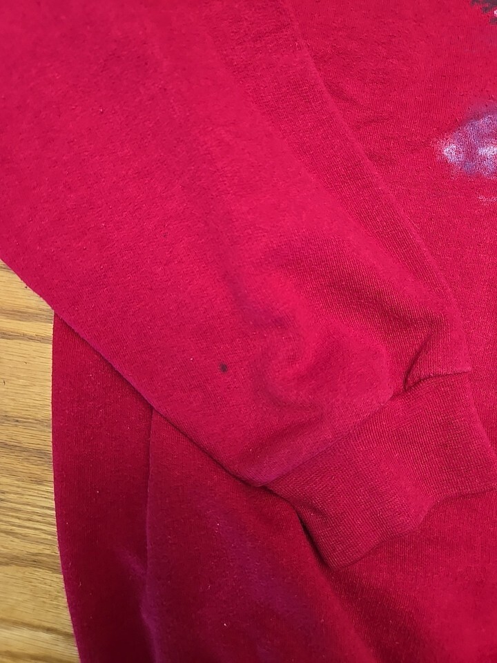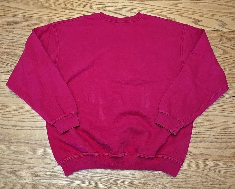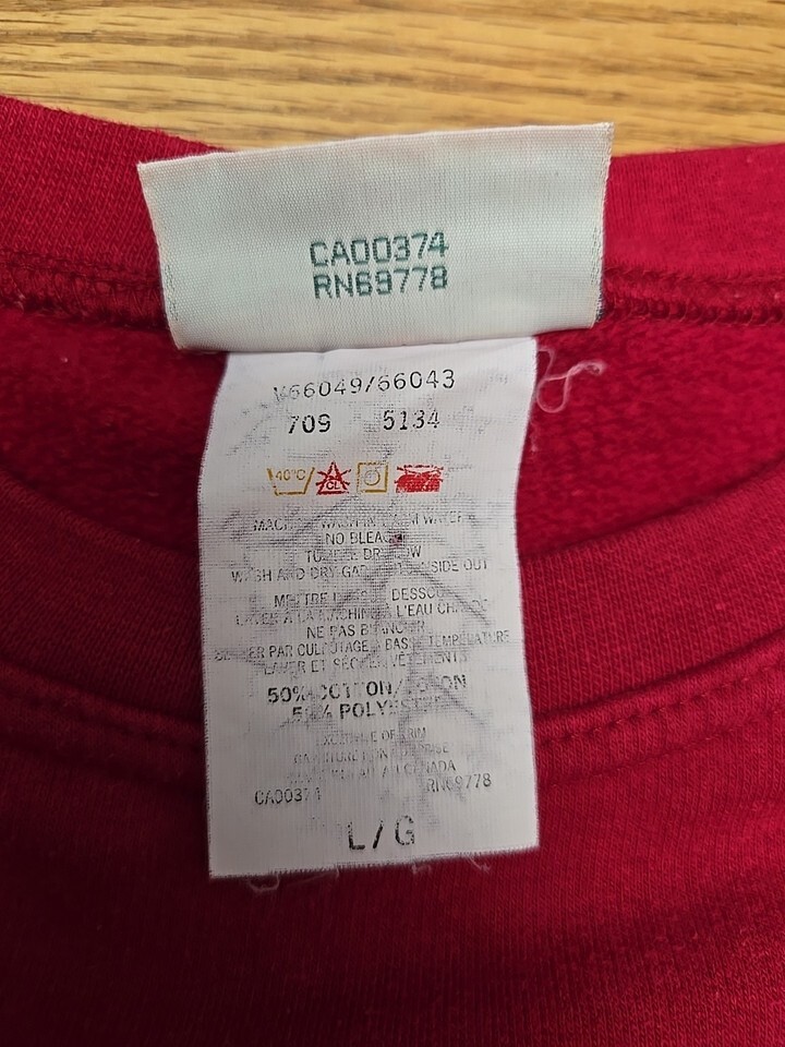 The Northern Reflections Vintage Sweatshirt is a stylish and comfortable addition to any woman's winter collection. Featuring a graphic print design with a winter and 90s theme, this pullover sweatshirt is perfect for casual occasions. Made from a blend of polyester and cotton knit fabric, this red sweatshirt with a crew neckline and long sleeves is machine washable for easy care. With a regular fit and size large, this sweatshirt is ideal for activities like walking, school, or hiking in the colder seasons. Made in Canada by the brand Northern Reflections, this vintage sweatshirt is a must-have for those who love nature-inspired fashion.