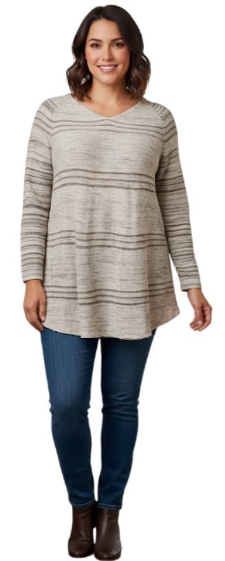 Style & Co Striped Tunic Women Hammack Heather Combo Sweater (Large) NWT