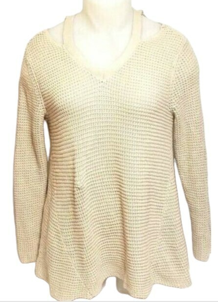 Style & Co. Women Cutout High-Low Stonewall 100% Cotton Sweater (Size:Large) NWT