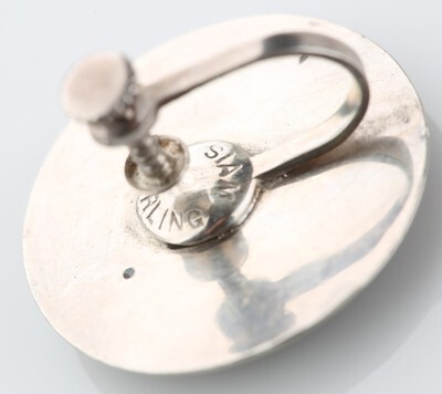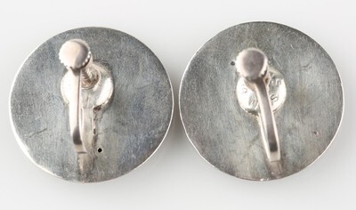 Vintage Sterling Silver Siamese Niello Etched Disk Earrings w/ Screw Backs