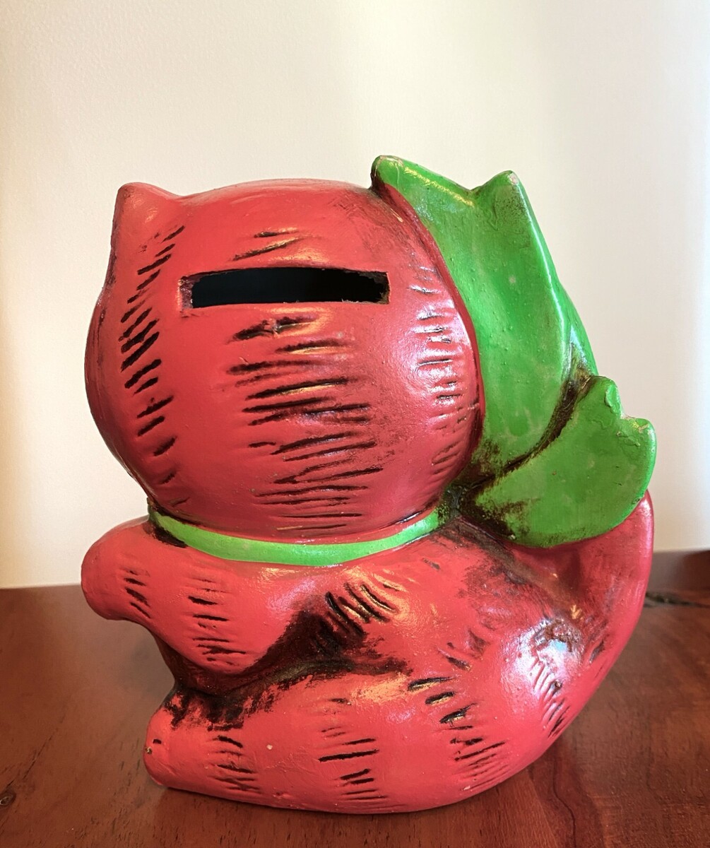 Vintage 1960's Japan Ceramic Mod Kitty Cat Bank Pink Green Mod Nostalgia