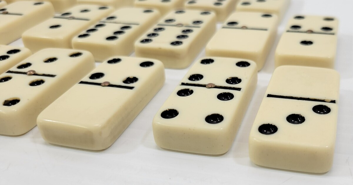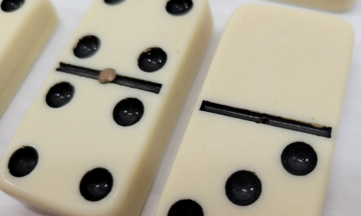 AP) Vintage Set of 28 Dominoes Game Tiles with Rivet Brads