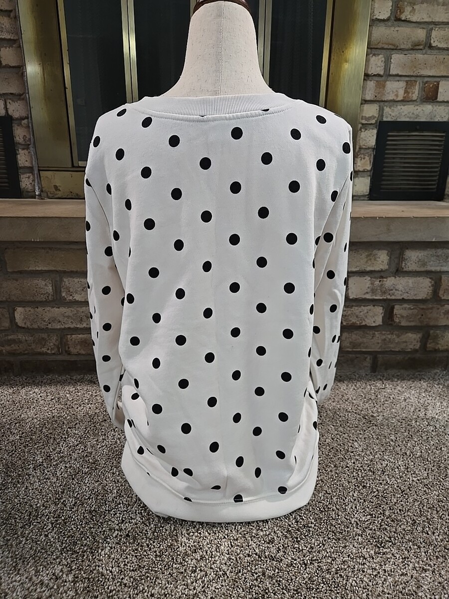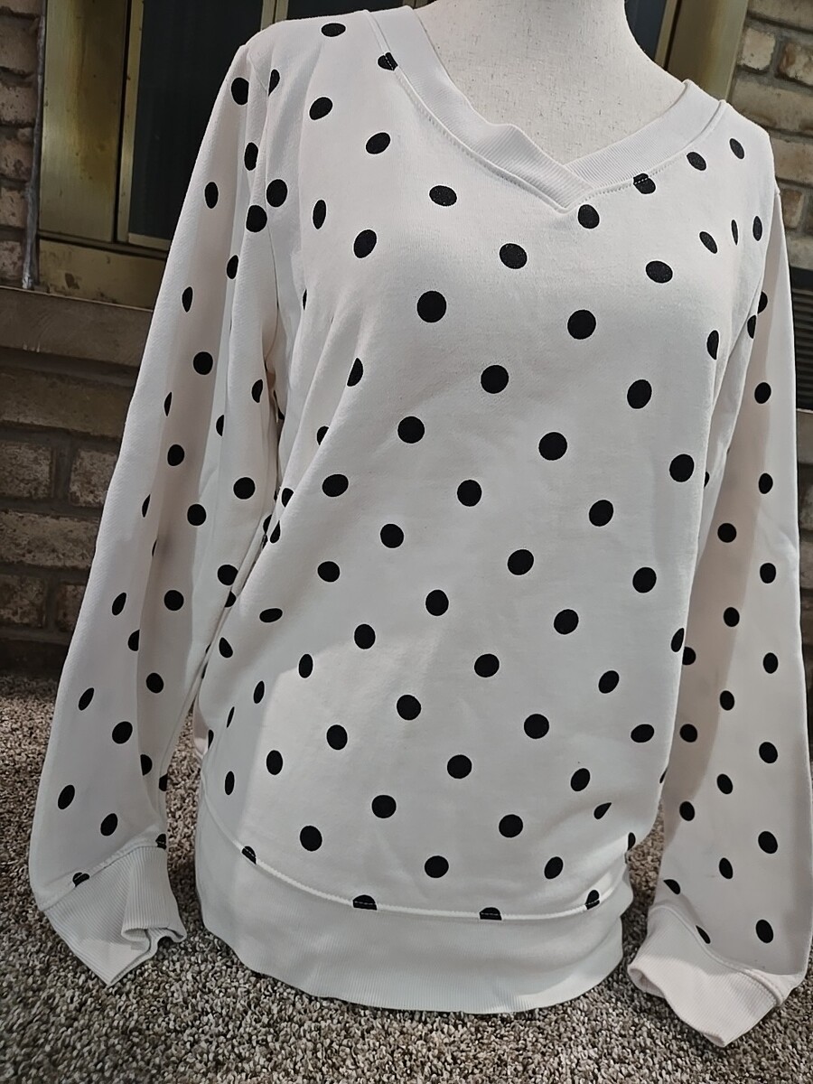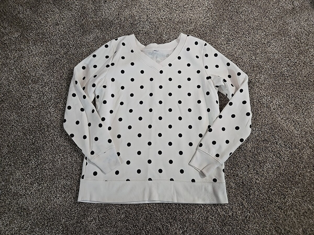 Old Navy Polka Dot Vneck Sweatshirt Womans Sz Small Retro Loungewear Relaxed Fit