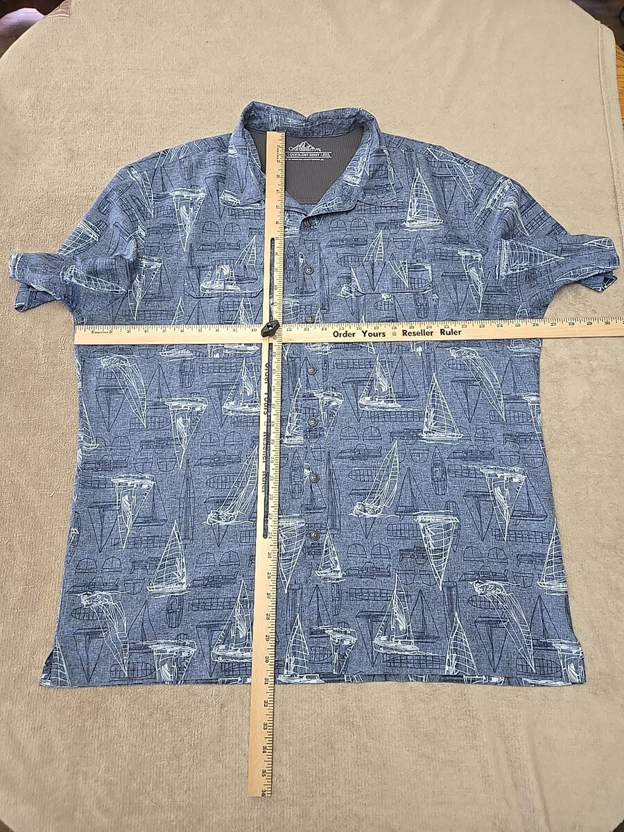 Croft Barrow Quick Dry Shirt Mens Size XL Blue Sailboat Fishing Boat Vented A1
