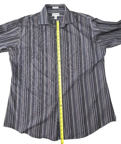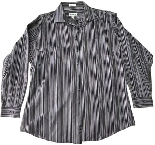 Pronto Uomo Button Up Shirt Men's 2XLT Brown Striped Cotton Formal Dress C