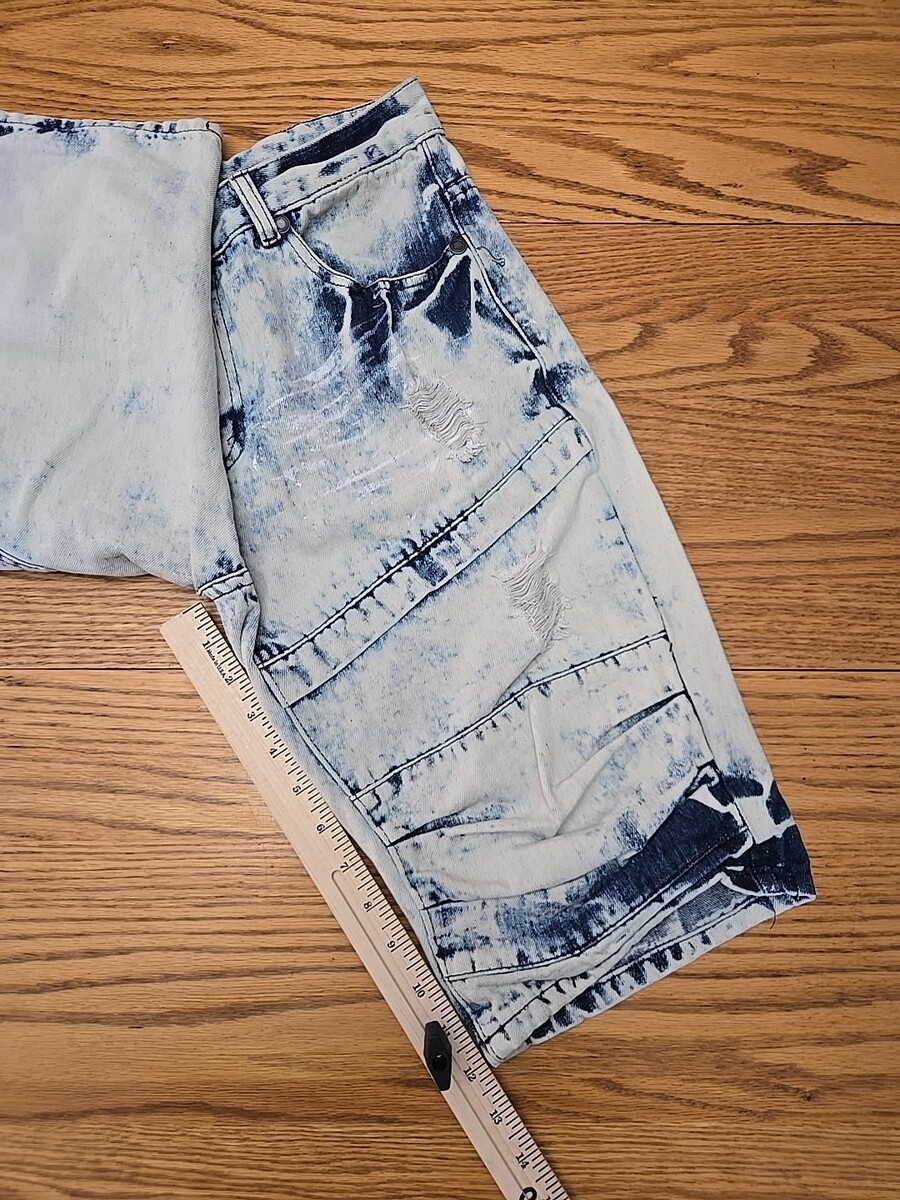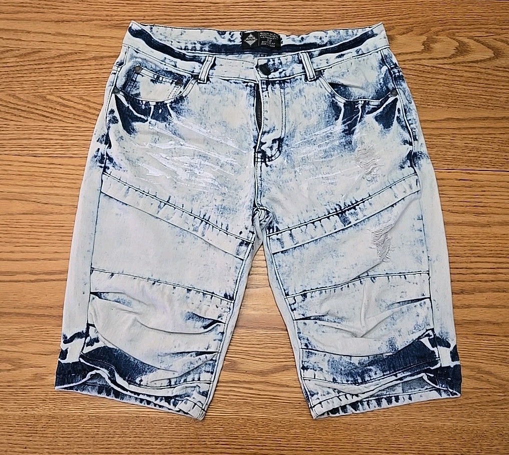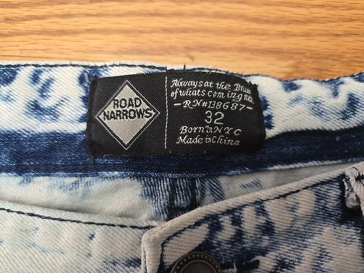 Road Narrows Jean Shorts Denim Jorts Mens Size 32 Bleach Distressed Acid Wash A1
