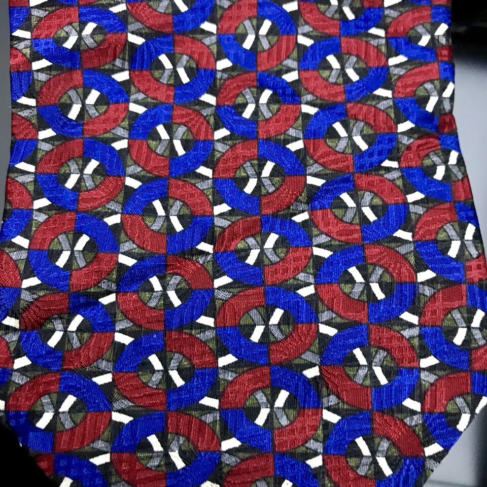You Are Buying A RON CHERESKIN Men's Tie Polka Dot Lattice Grid 4? x 59? Black Red Silver