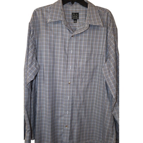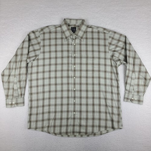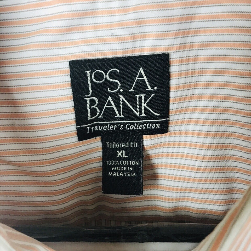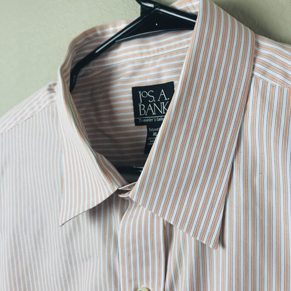 You are buying a Jos A Bank Men's Travelers White Peach Stripe Cotton Casual Shirt XL XLarge