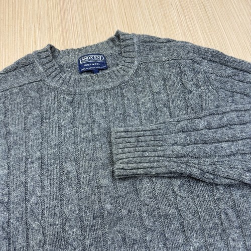 Lands End Men's M Medium Navy Cable Knit Sweater Crewneck 100% Wool
