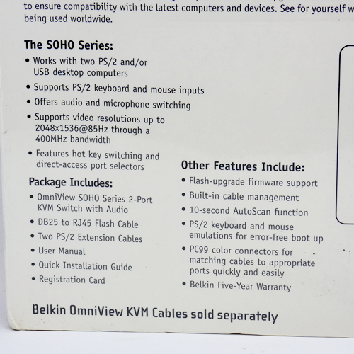 BELKIN OmniView SOHO F1DS102U KVM Switch Audio PS/2 USB VGA 2-port PC Mac Linux