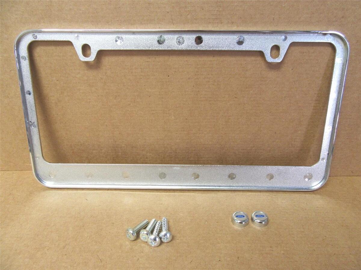 Fits 1983-2021 Ford Ranger Chrome Black Metal License Plate Frame w/ Logo Caps