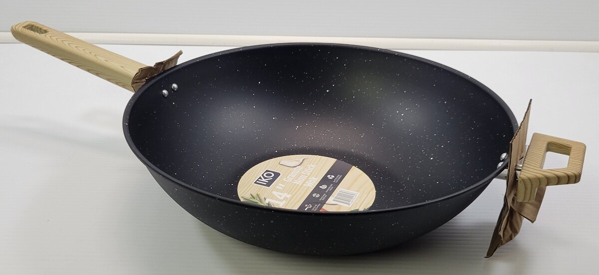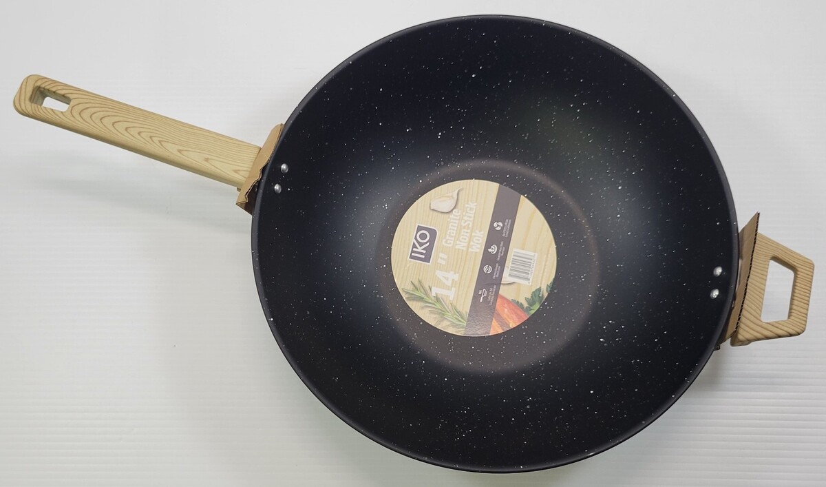*D) IKO 14" Granite Non Stick Wok Black Pan