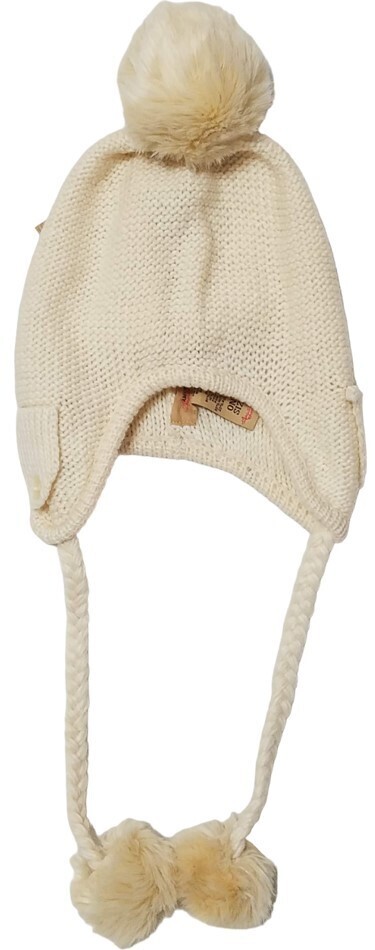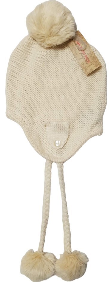 American Rag Women Soft Knit Ivory Trapper Hat with Ivory Pom-Poms - NWT