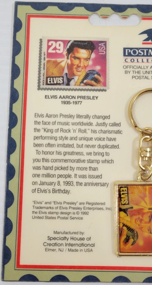 N1) 1992 USPS Postmark Collection Elvis Presley Postage Stamp Key Chain