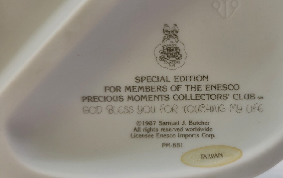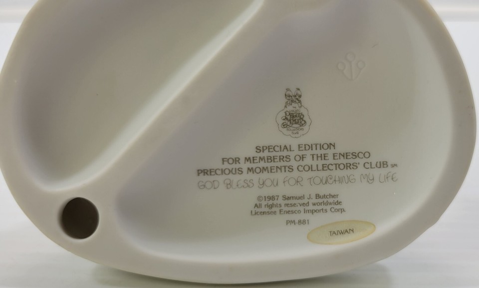 *R17) Precious Moments 1987 Samuel Butcher God Bless for Touching Life Figurine