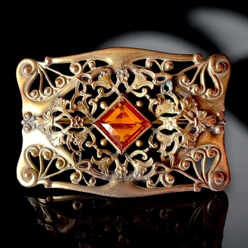 The masonic theme adds to the antique charm of the brooch, which is in the shape of a flower. The round blue rhinestones are the main stones, and the piece is from the retro era of 1935-1950. This item is perfect for those who love vintage and antique jewelry.