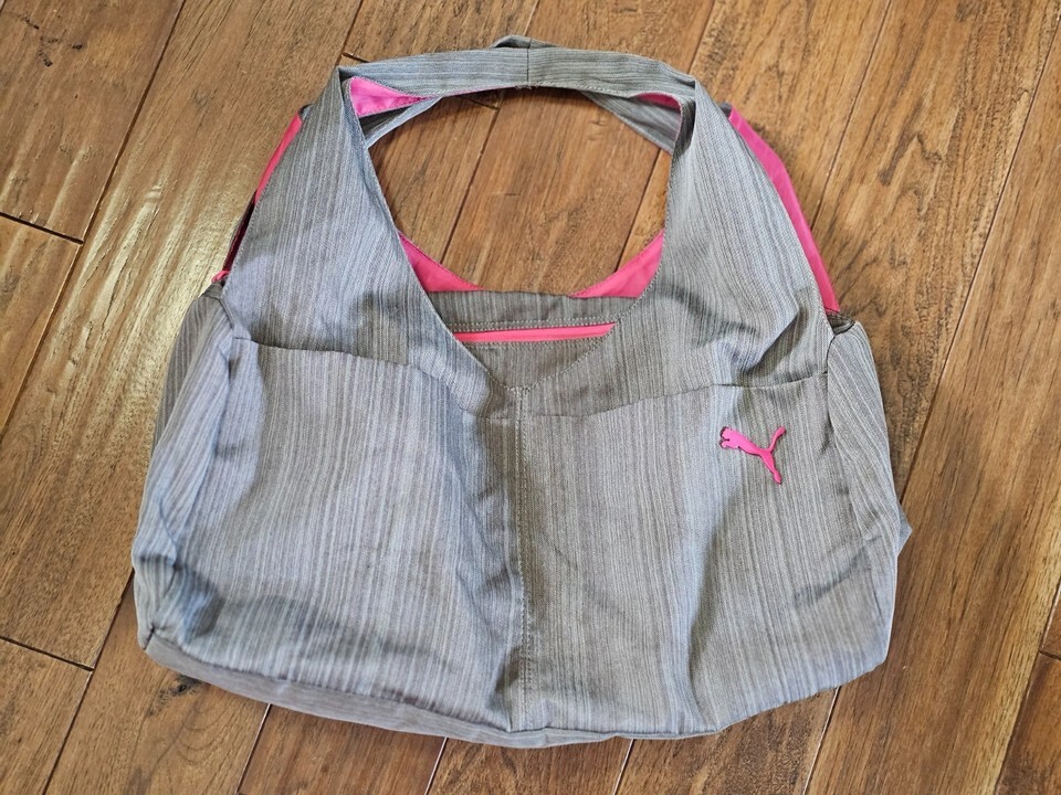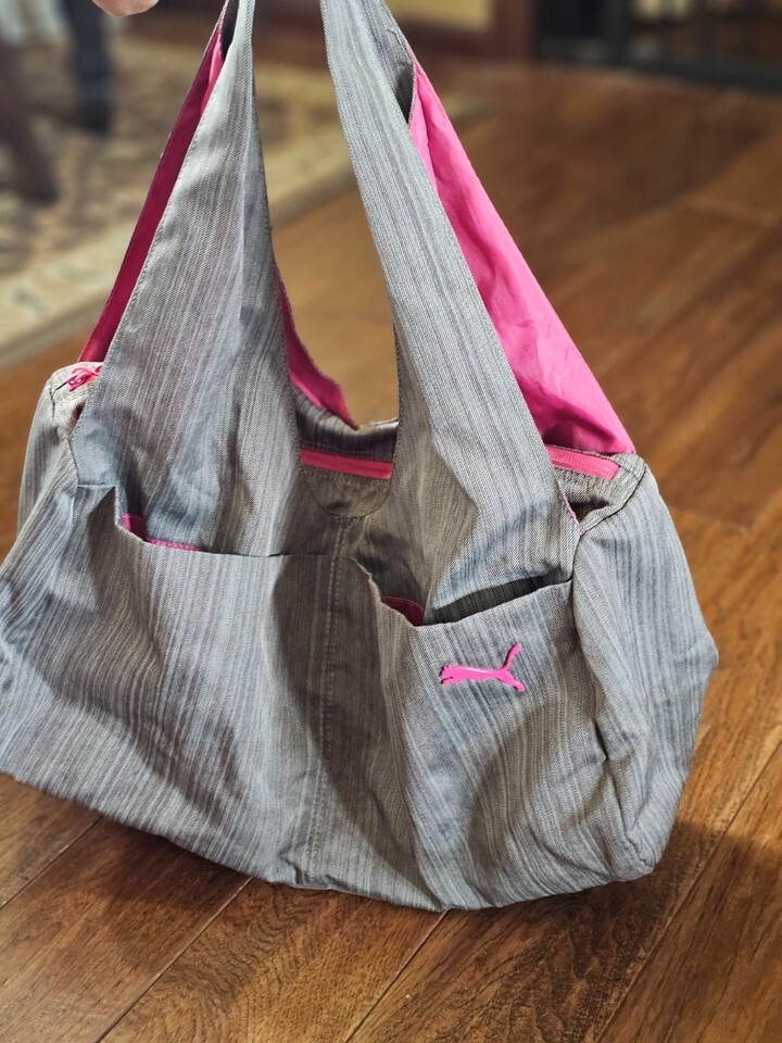 Puma Duffel Shoulder Bag 12x20 Workout Travel Fitness Tote Grey & Pink