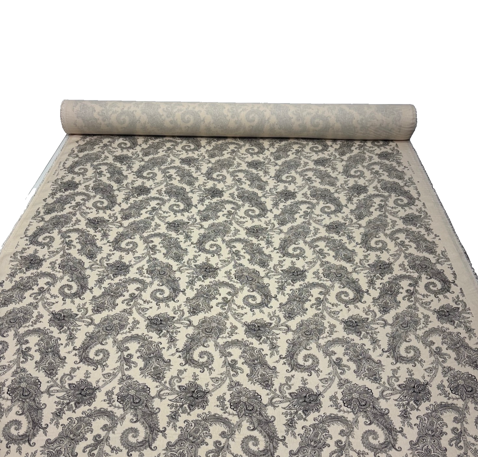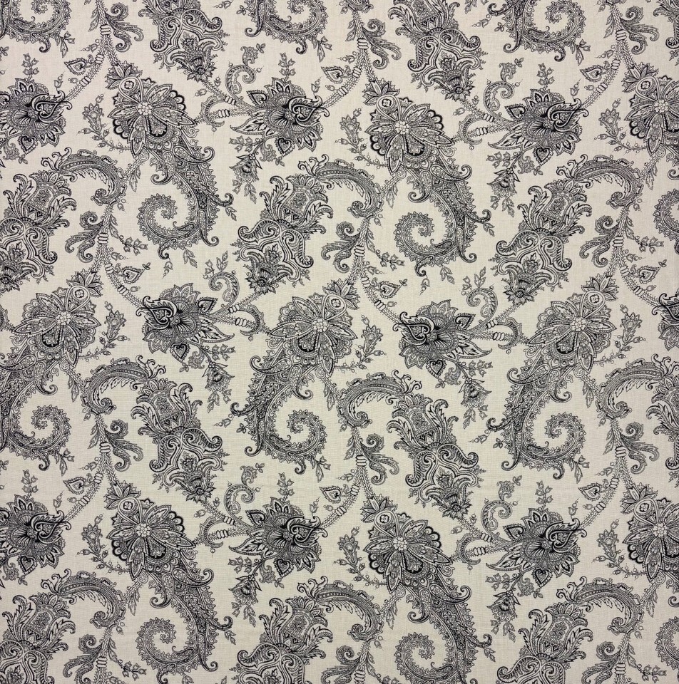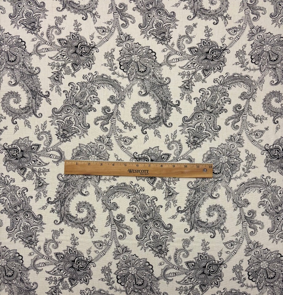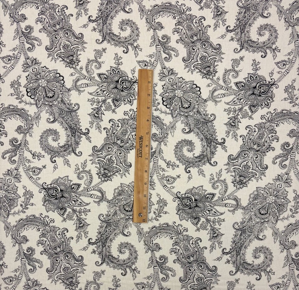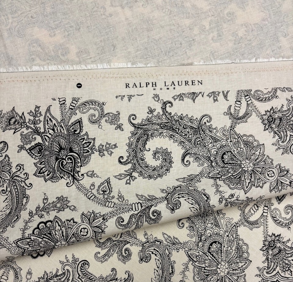 RALPH LAUREN DERWENT PAISLEY ECRU MEDALLION BLACK 100% LINEN FABRIC BY YARD 54"W