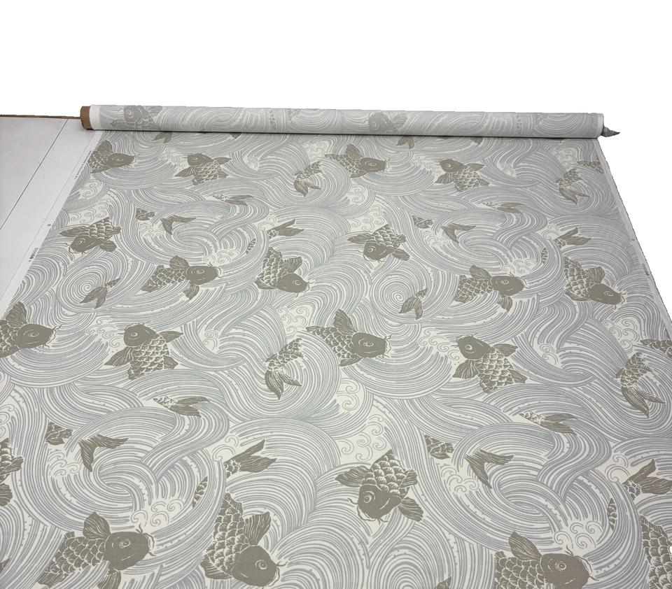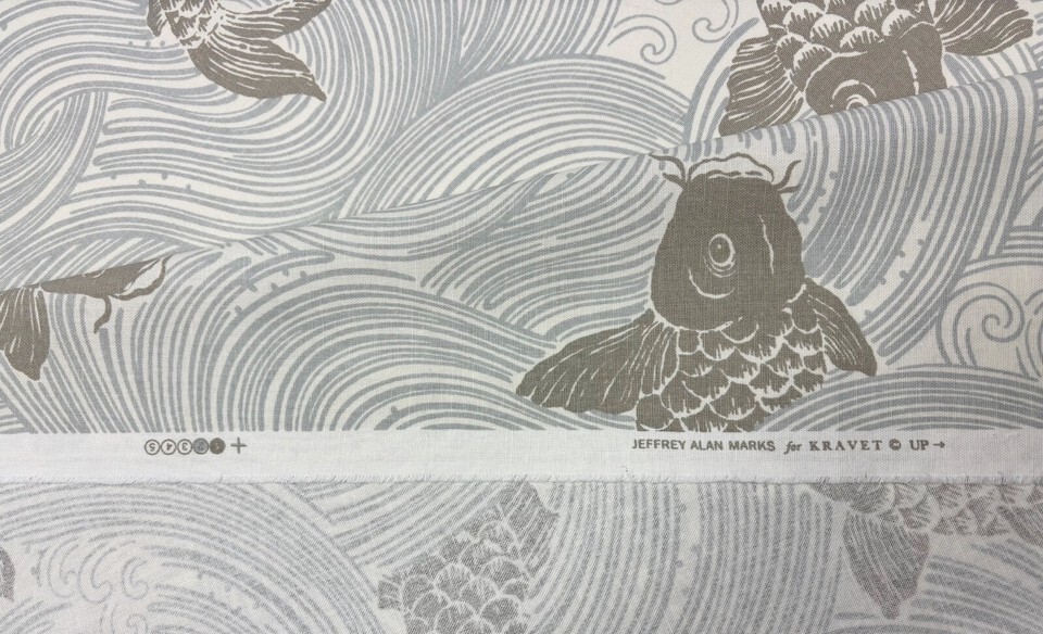 KRAVET JEFFREY ALAN MARKS UPSTREAM MIST BLUE FISH DESIGNER FABRIC 2.5 YARDS 54"W