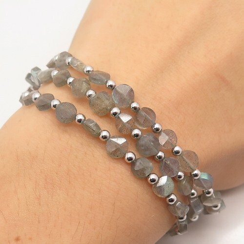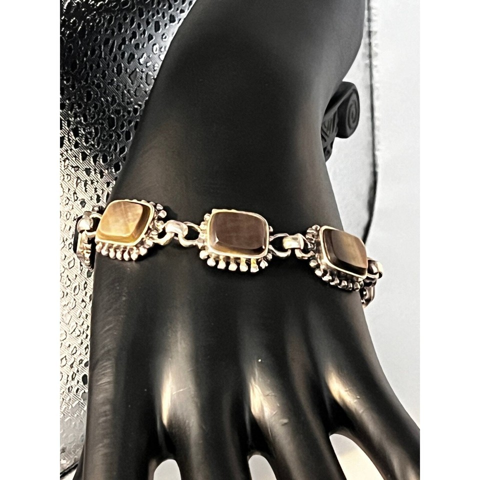 A GIFT BOX AND BAG WILL BE INCLUDED WITH EVERY ITEM PURCHASED DURING THE HOLIDAY SEASON.Gorgeous sterling silver link bracelet Approx. length is 7 inches. Stamped "925". The stones look like a form of quartz. A very good piece to add to your collection.
